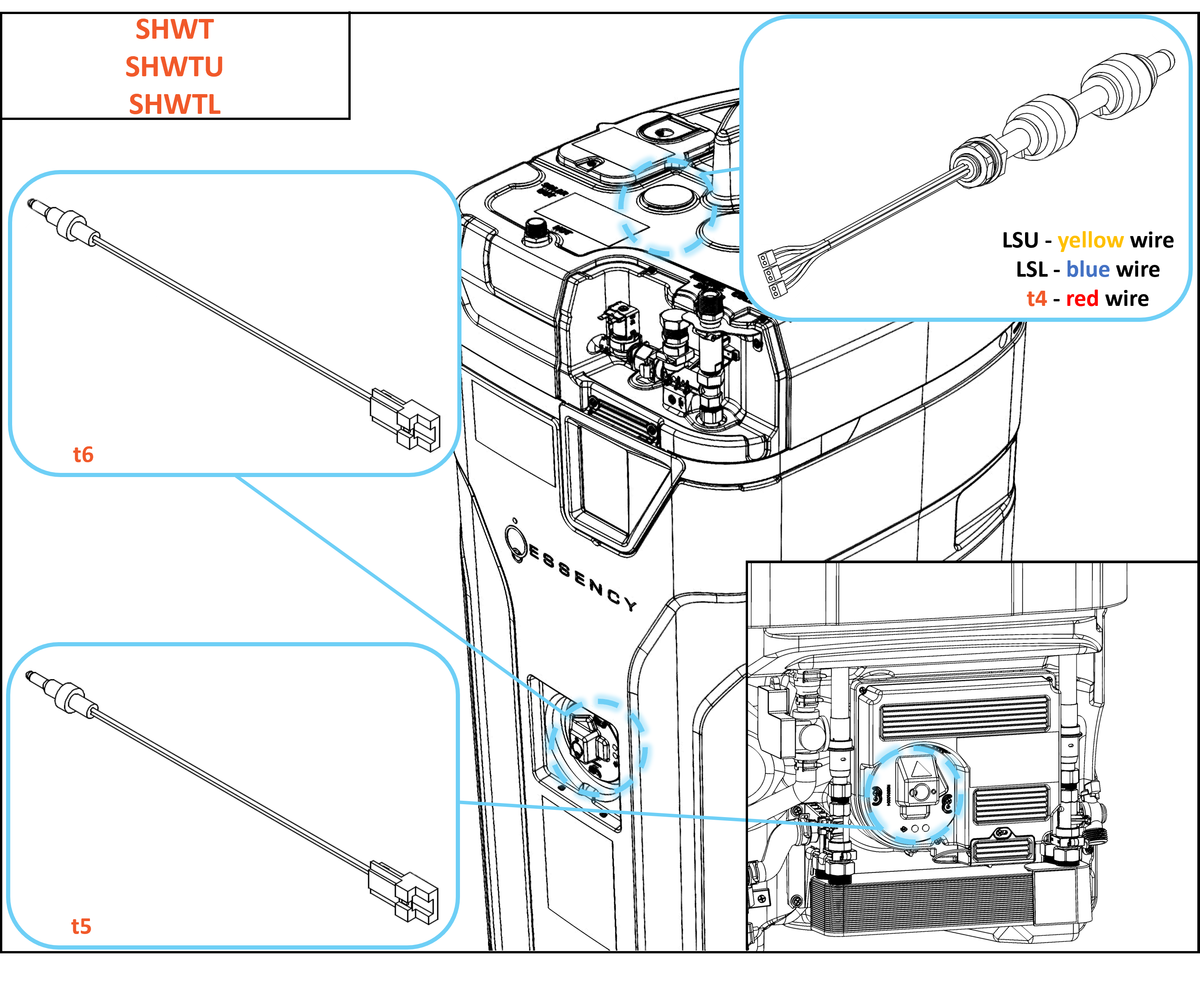 These sensors are located next to the heating elements and at the top of the water heater.