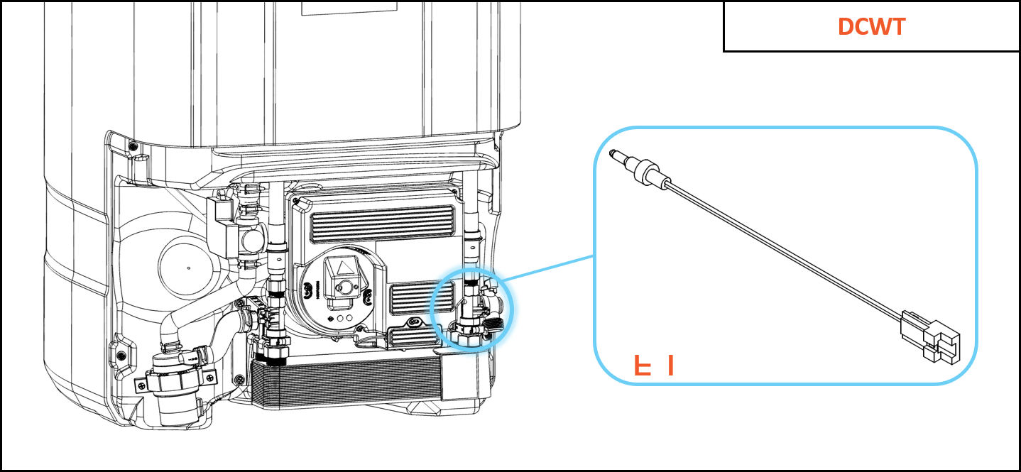 These sensors are located at the heat exchanger inlet on the domestic side (front side).