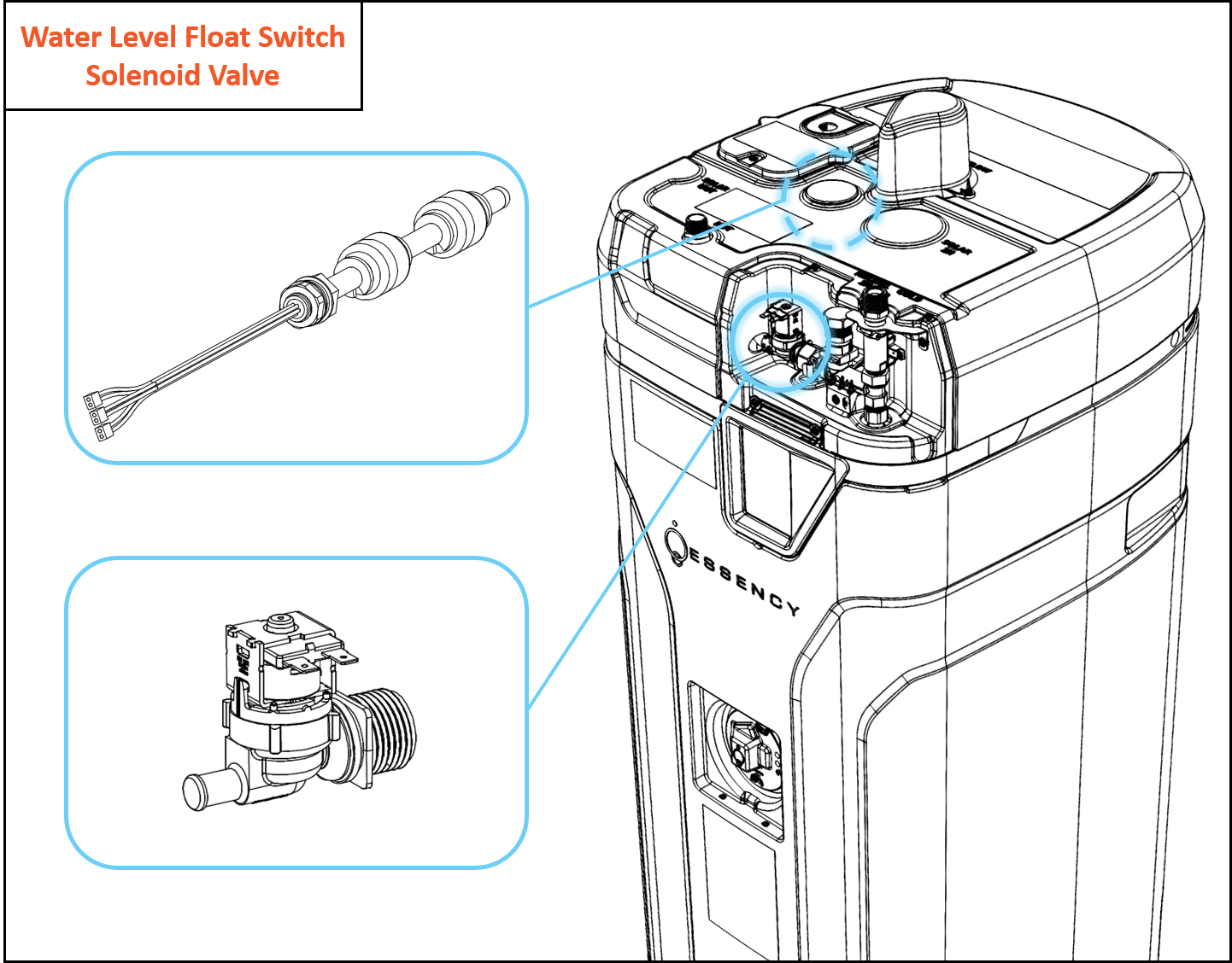 The water level is monitored by the Water Level Float Switch (WLFS) and the tank is filled by the Solenoid Valve (SV).